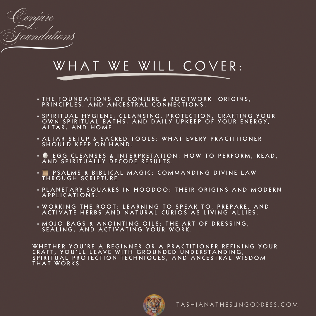 Whether you’re a beginner or a practitioner refining your craft, you’ll leave with grounded understanding, spiritual protection techniques, and ancestral wisdom that works.